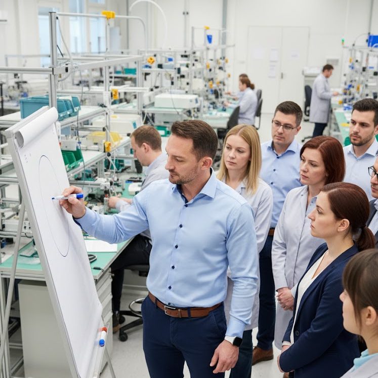 Ich entwickle Teams und Führungskräfte weiter, vermittle praxisnahes GxP- und Prozesswissen und überführe es in funktionale Standards. Das Ergebnis sind kompetente, selbstständig agierende Einheiten mit hoher Prozesssicherheit.